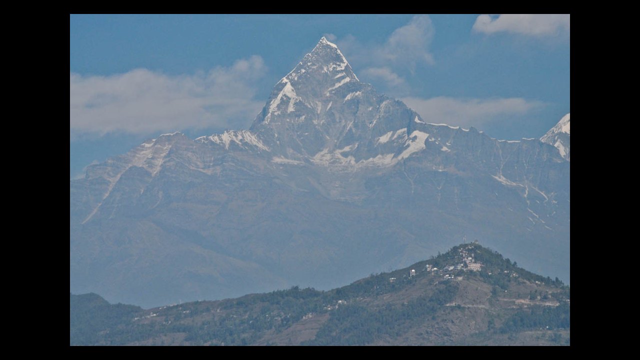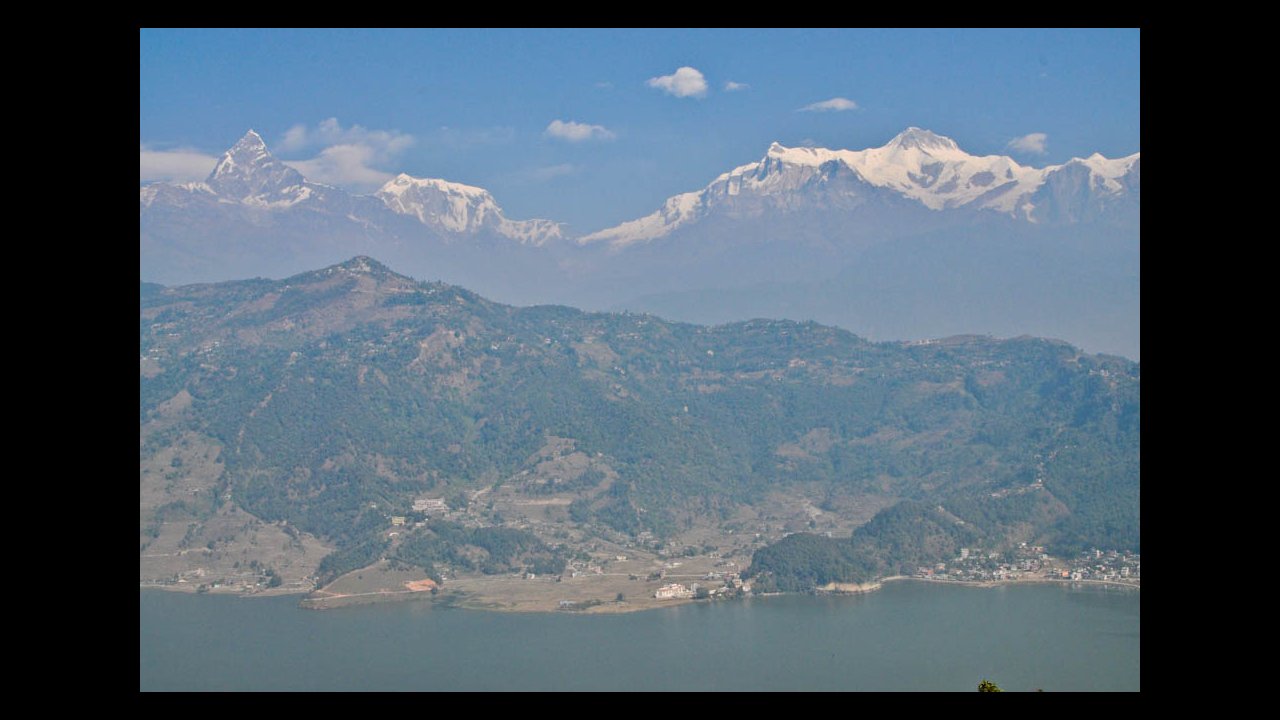 - Mount Annapurna, Fishtail close view with bird-eye view of Pokhara city & lakes